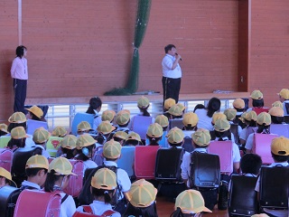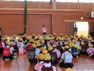 今回は大雨が降ったときの水難に備えた集団下校の訓練です。