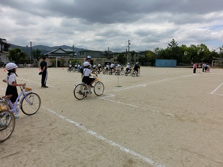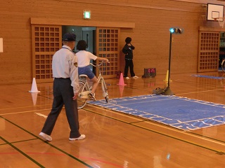 朝早くから交通安全協会の指導員さんから指導をいただいています。