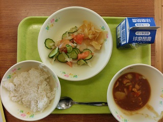 今日も実習生の考案メニューです。とてもおいしくいただきました。