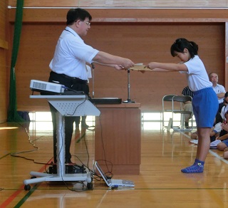 また、表彰では、夏休みの作品展や部活動の活躍などが表彰されました。更新が滞りました。