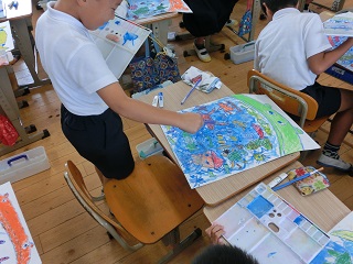 「海の様子を音が聞こえてくるようにかこう」ということで、