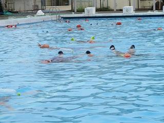 普段とは異なる服での水泳や浮いて待つことを体験しました。