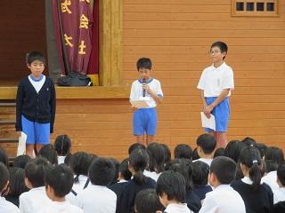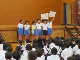 環境委員会の発表では、各学級の環境ISO宣言が紹介されました。