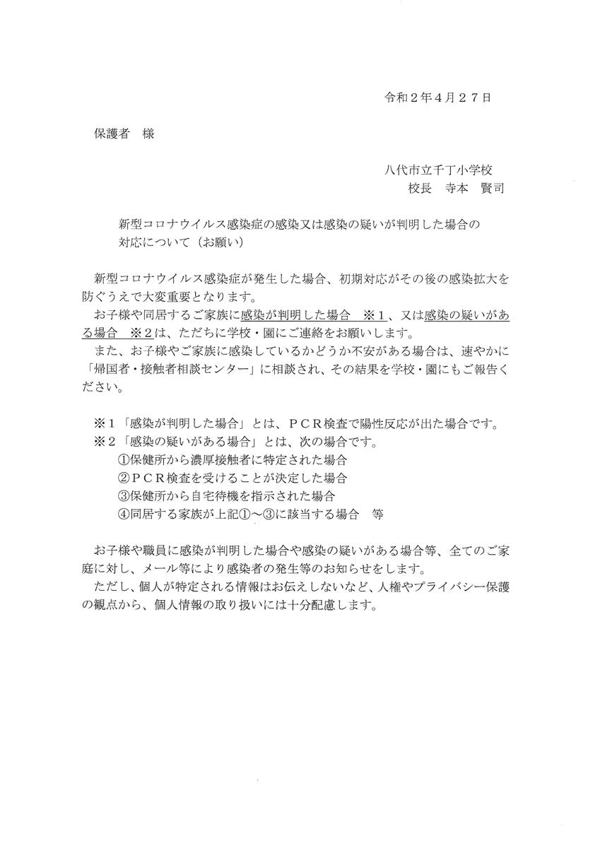 <新型コロナウイルス感染症の感染又は感染の疑いが判明した場合の対応について(お願い)>