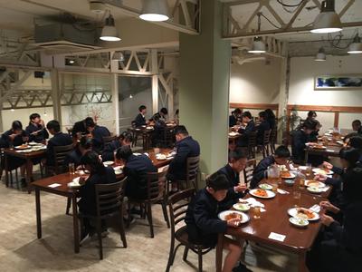 みんなで朝食をおいしくいただきました。中には、おかわりする子もいて、みんな笑顔いっぱいです。代表の子がホテルの方にお礼を伝えてくれました。