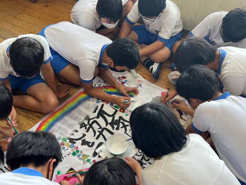 また、毎日昼休みには6年生が応援団、旗づくり、看板づくりの3チームに分かれて準備に励んでいます。