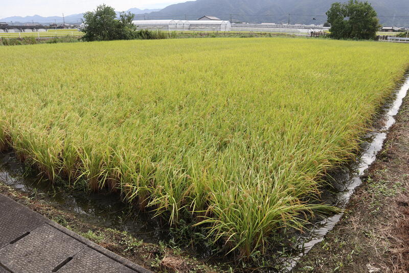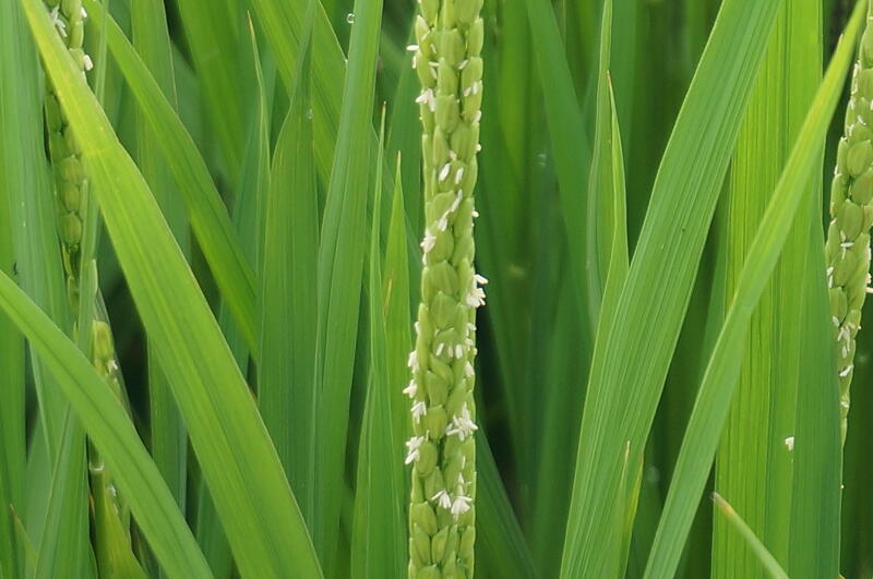 8月下旬に花が咲き、9月中旬には稲穂の頭が垂れ、順調に成長しています。