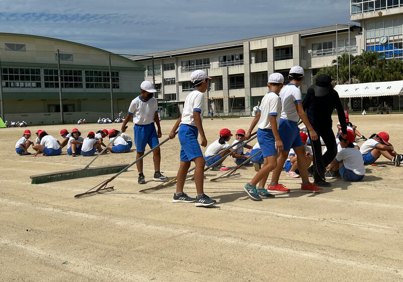 高学年の児童を中心に、グラウンドの整備や飾り付け、校舎周辺の掃除など、一人一人が役割を一生懸命果たそうとしています。