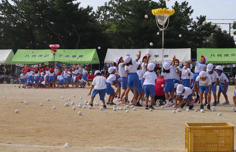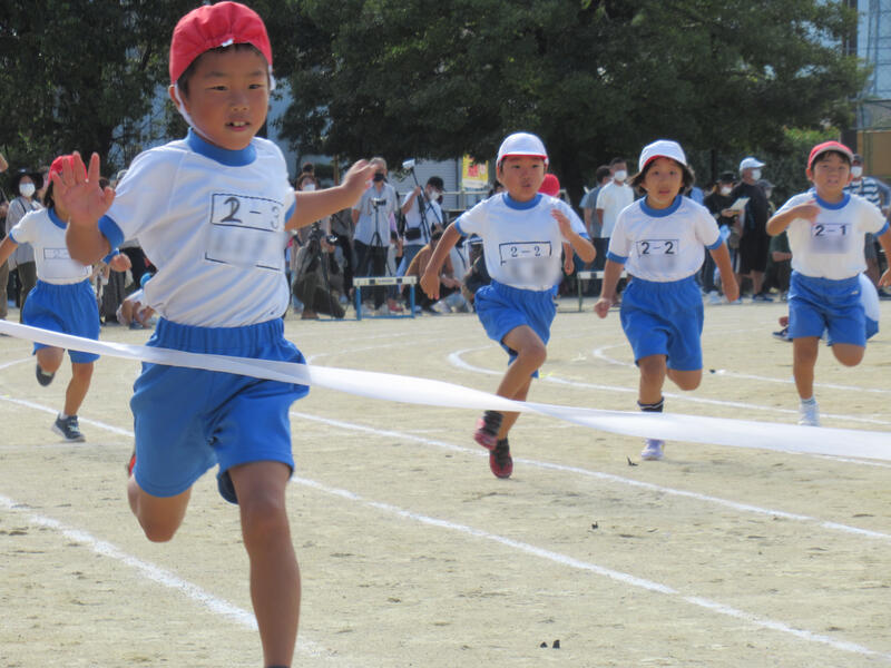 いい天気に恵まれ、1年生から6年生までの子供たちは、徒競走や団体競技、表現運動に一生懸命取り組みました。
