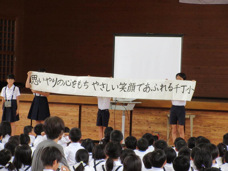 今年度の児童会目標は「思いやりの心をもち、やさしい笑顔であふれる千丁小」です。