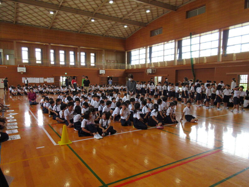 初めて全校児童が体育館に集まった集会でしたが、並び方もスムーズで、集中して話を聞いていました。