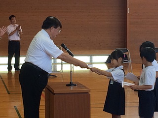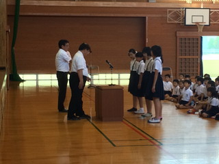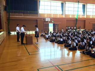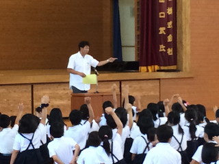 八代市協会長杯バレーボール大会の表彰など、みんなのがんばりが全校で紹介されました。