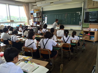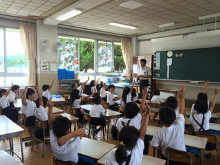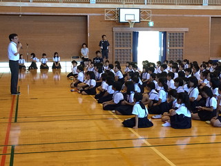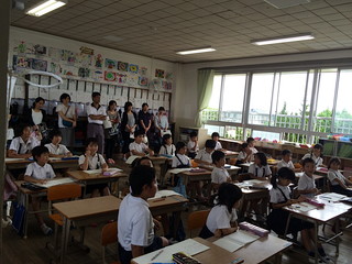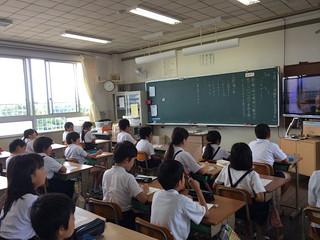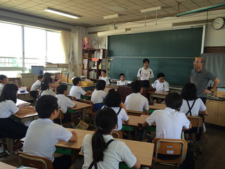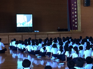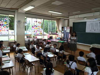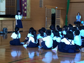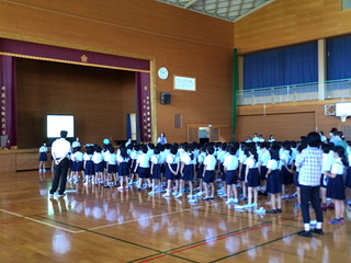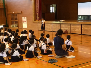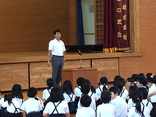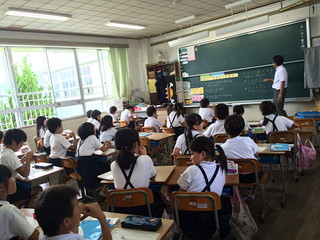 まずは教頭先生からのお話がありました。戦争が終わって70年たったことや、語り継ぐ人が少なくなっていることなど、今日の学習で大事なことなどについてお話がありました。