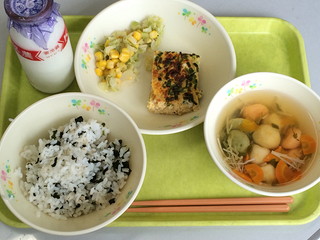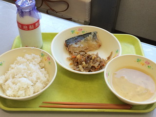 今日の給食には鯖やきんぴらゴボウが出ました。とてもおいしいですよ!