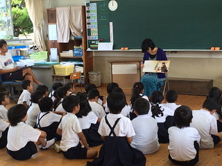 今日は給食時に読み聞かせボランティア「いないいないばあ」の方の読み聞かせがありました。