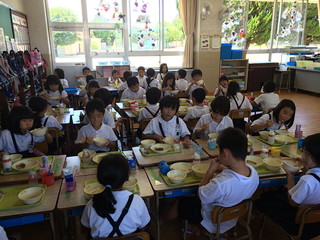 少し早い給食でしたが、授業参観へ向けて元気いっぱいになれるようにたくさん食べました。