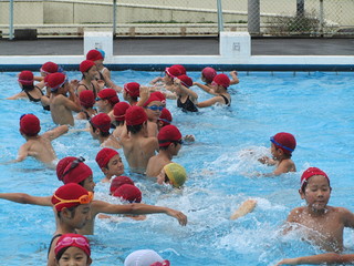 最後の水泳の時間は着衣水泳を行っています。今日は4年生でありました。