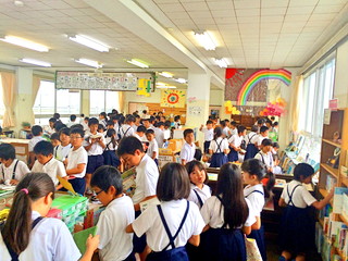 雨だったためか、図書室では夏休みの本を借りるための行列ができていました