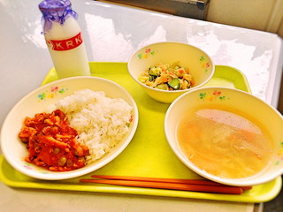 今日の給食は豚キムチが出ました!スタミナがつきますね!