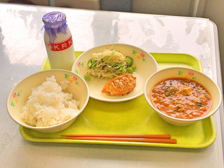 今日の給食は麻婆豆腐と餃子でした!おいしかったですね!