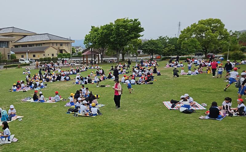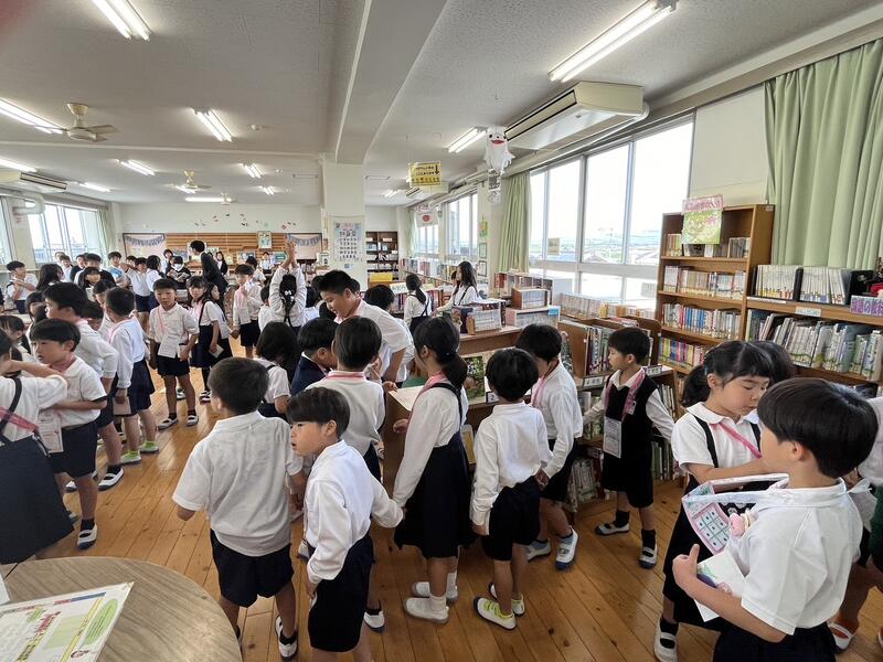 「みよちゃんとがめさん」「がめさんとひこいちどん」の読み聞かせでは、生演奏の音楽のおかげで迫力抜群!子どもたちはお話にどんどん引き込まれていきました。八代妙見祭まるばつクイズでは、妙見祭の傘鉾について学びました。最後は、がめさんダンスを教えていだたき、みんなノリノリで踊りました。
