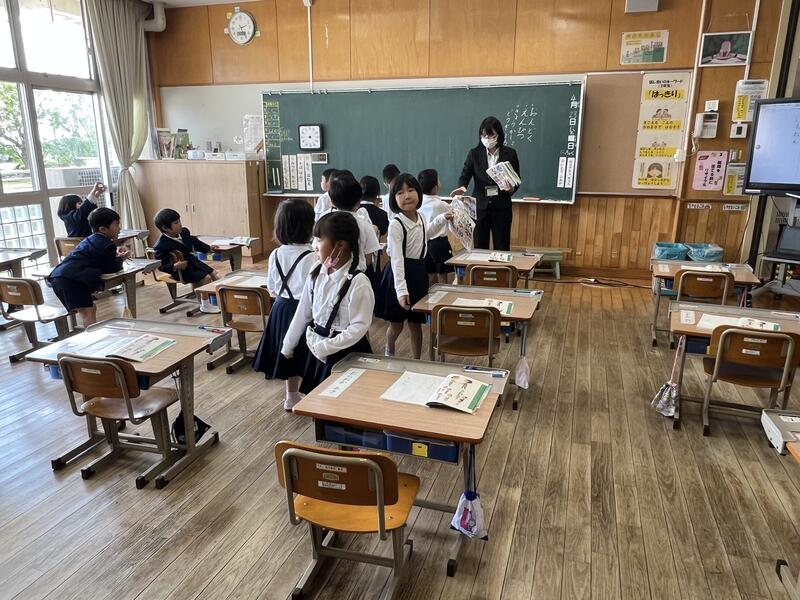 毎週月曜日の朝自習に読み聞かせを行っています。地域の読み聞かせボランティアや保護者の方々が来られ、読み聞かせをしていただいています。子どもたちは、月曜日のこの時間をとても楽しみにしています。