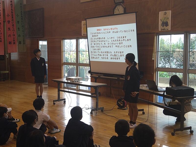 3月1日(金)、なかよしホールで児童朝会を行いました。