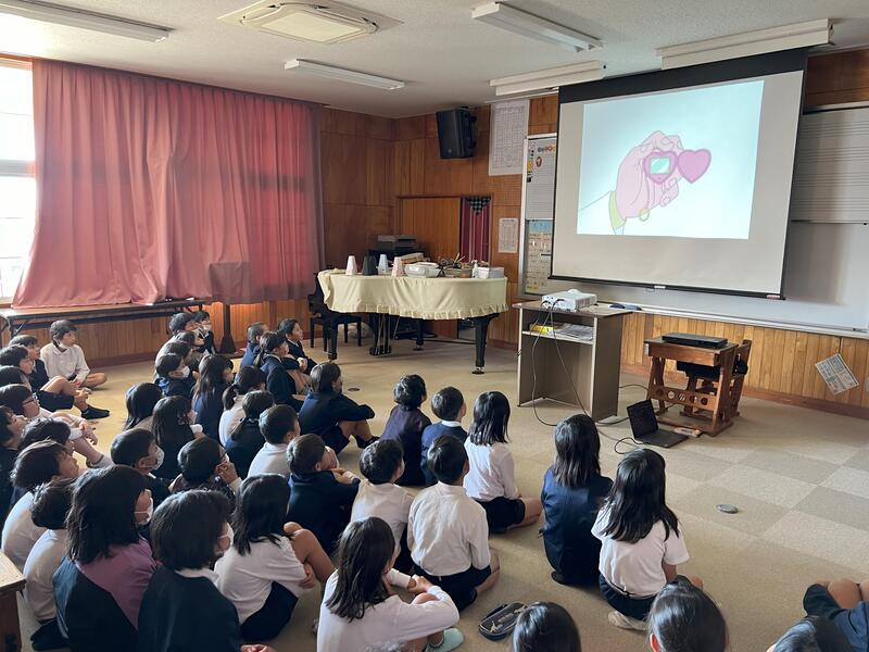 スライドを使って分かりやすく説明してくださいました 子どもたちも真剣に聞き入っていました