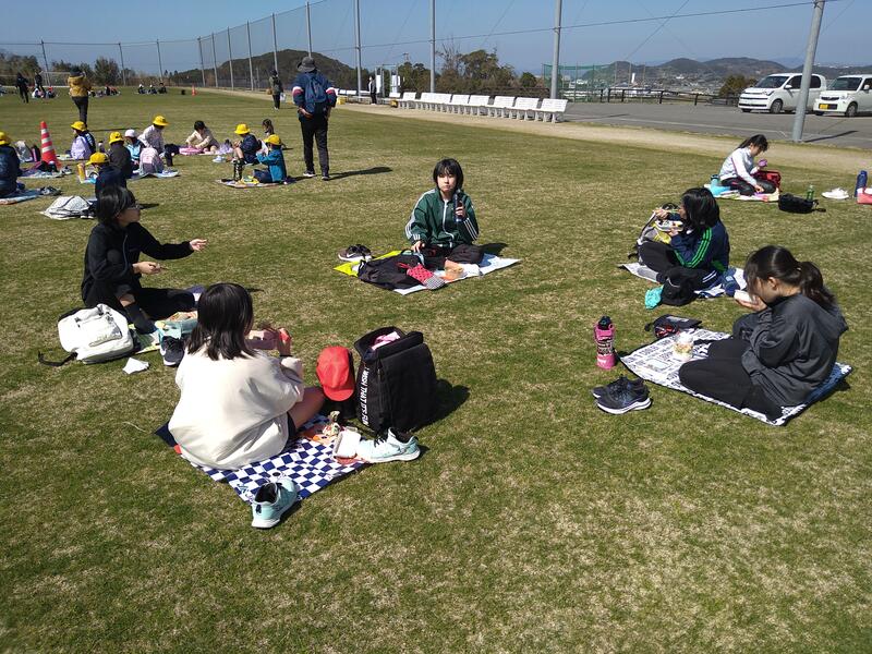 そして、いよいよ出発。会場のりんせんグランドに着くと、早速お弁当を食べました。
