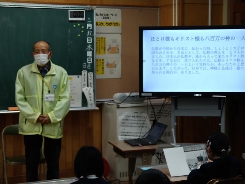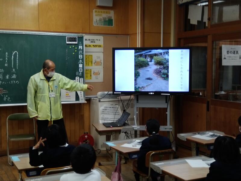 3月9日(木)、3年生の総合的な学習の時間「ふるさと大好き」の学習を行い、ゲストティーチャーとして神﨑雄史郎さんに来ていただきました。