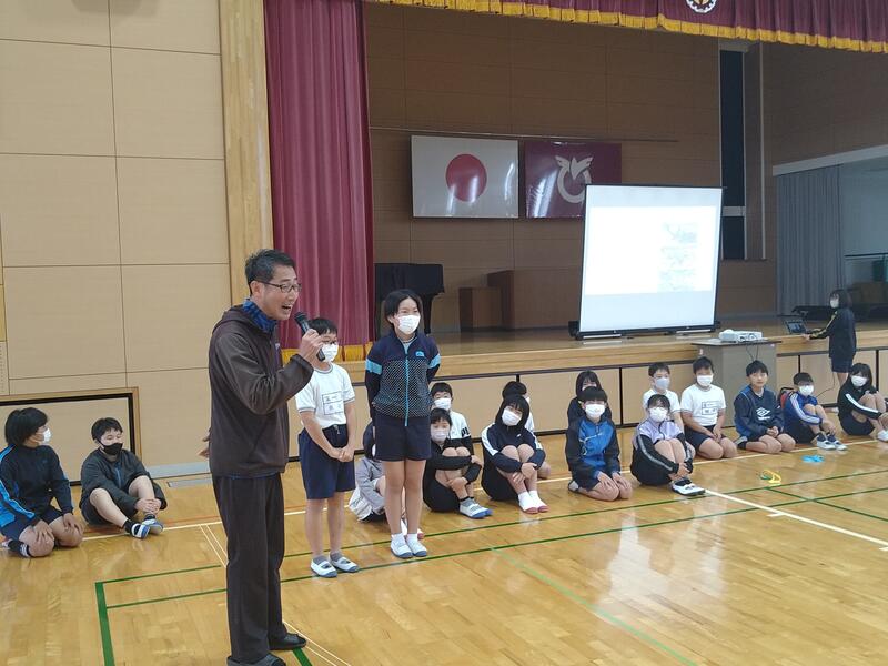 スライドを使って分かりやすく説明してくださいました 子どもたちも真剣に聞き入っていました
