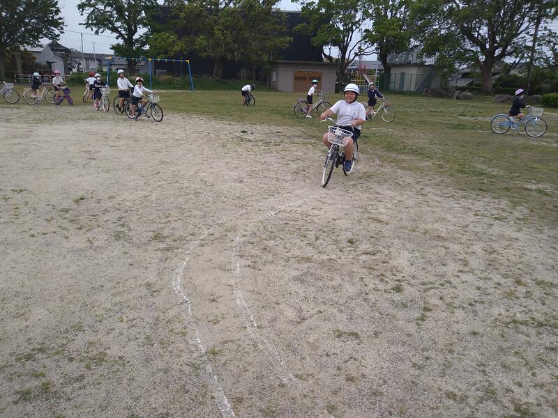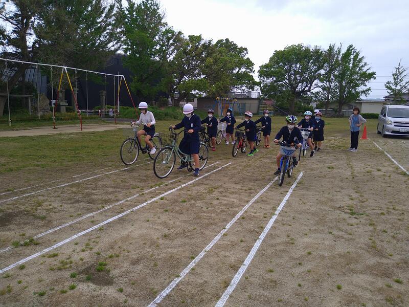 4月19日(水)、交通教室の実技を行いました。3年生以上の子どもたちの自転車を荒木自転車さんが点検してくださったり、苓北交番や交通安全協会の方々が交通指導をしてくださったりしました。
