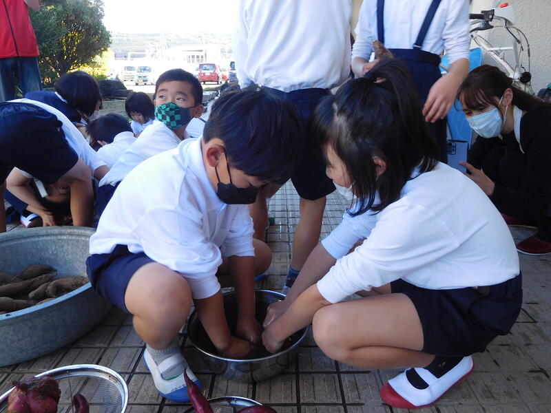 11月24日(木)に2年生、25日(金)に1年生が、「ふかしいも」を作りました。