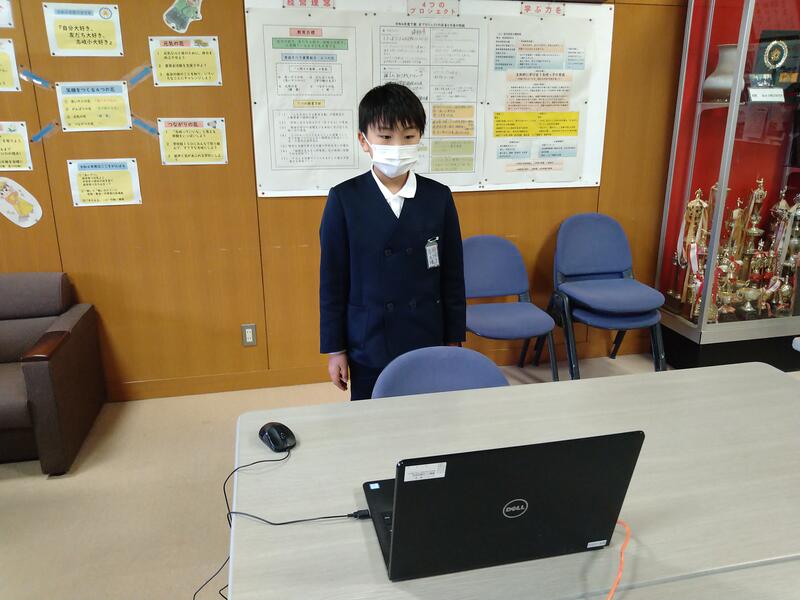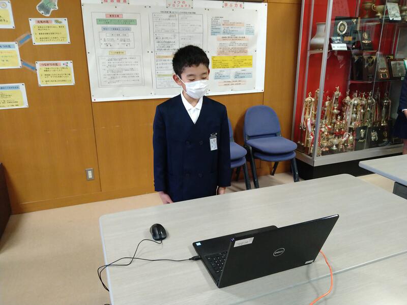 12月22日(木)の朝自習の時間、持久走大会の表彰を行いました。各学年、男女1位(新記録も含む)、宣言タイム1位(宣言タイムと実際のタイムの誤差)の子どもたちを校長室で表彰し、その様子をリモートで各教室に流しました。