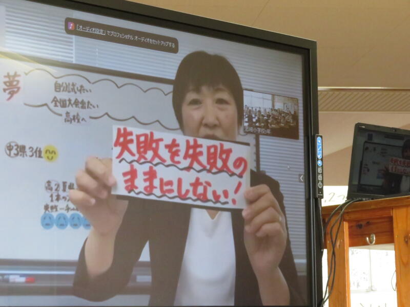例年、講師の方が来られて、運動を通して思いを伝えられたり、講話をされたりしていたのですが、本年度はコロナ対策のためリモートで実施しました。