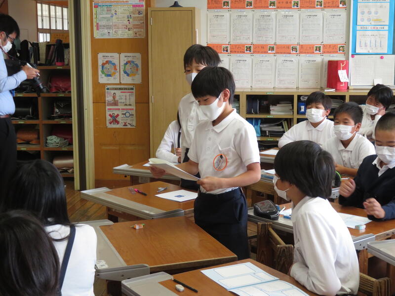 今月の生活目標は、「進んで学習や読書に取り組もう」でした。各学級で反省を行い、代表児童が発表しました。