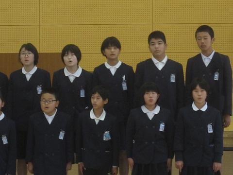 前回の音楽集会は器楽部の演奏でしたが、今回は6年生が卒業式で歌う合唱を聴きました。在校生(1~5年生)は卒業式に出席できませんので、これが最初で最後の演奏でした。6年生のきれいな歌声が体育館に響き渡り、在校生のみんなも別れ惜しむ気持ちがわき上がってきたのではないかと思います。