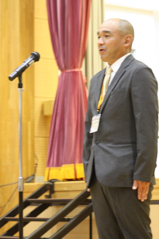 最後は、会場全員で心を込めて校歌斉唱 そして、田中PTA会長が全体の閉会の挨拶を述べました