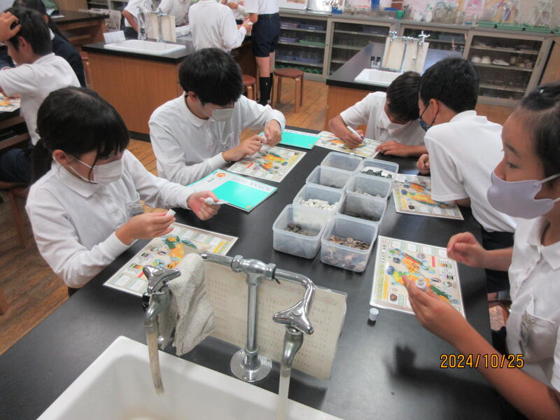 10月25日(金)と28日(月)、6年生が「天草自然学習」を行いました。両日とも、天草市の学芸員でいらっしゃる鵜飼さんをお招きして、天草の地層についての学習会を開きました。