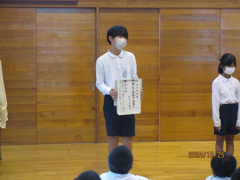まずは、10月の生活目標の反省 10月の生活目標は、「進んで学習や読書に取り組もう」でした