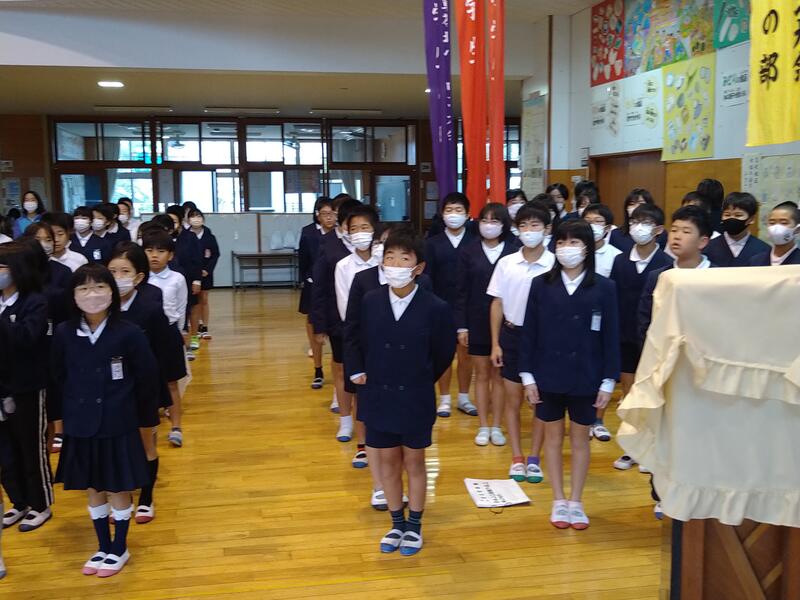 久しぶりの対面での集会活動。みんなの前で、目と目を合わせて発表することは、大変貴重な体験です。11月10日(金)の学習発表会も、全学年で行うことになりました。このような体験を積み重ねることで、表現力の育成を目指していきたいと思います。
