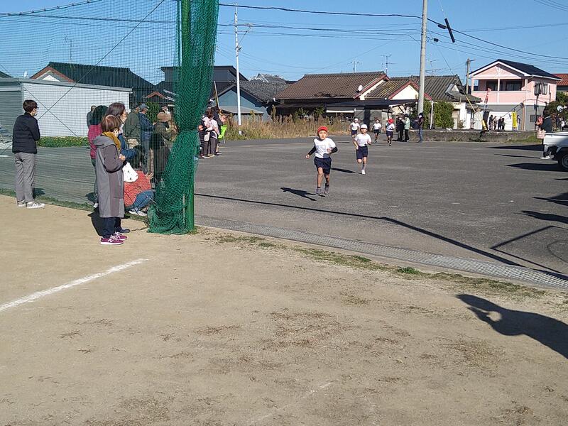 次は、1・2年生。周回コース2回、約1.2kmを走りました。