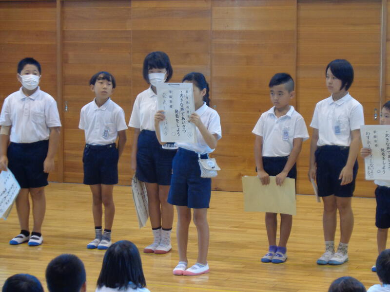 9月の生活目標は「大きな声であいさつ、発表をしよう」でした