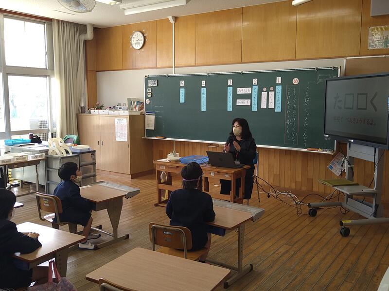 スライドを使って分かりやすく説明してくださいました 子どもたちも真剣に聞き入っていました