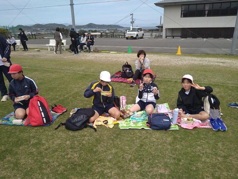楽しい雰囲気で進められた歓迎会が終わり、いよいよ出発。目的地は麟泉運動公園でした。1年生は6年生に手を引いてもらいながら目的地に向かいました。公園に着くとすぐにお弁当。ここでも1年生は6年生と一緒に会食。おいしいお弁当が、ますますおいしく感じられたことでしょう。