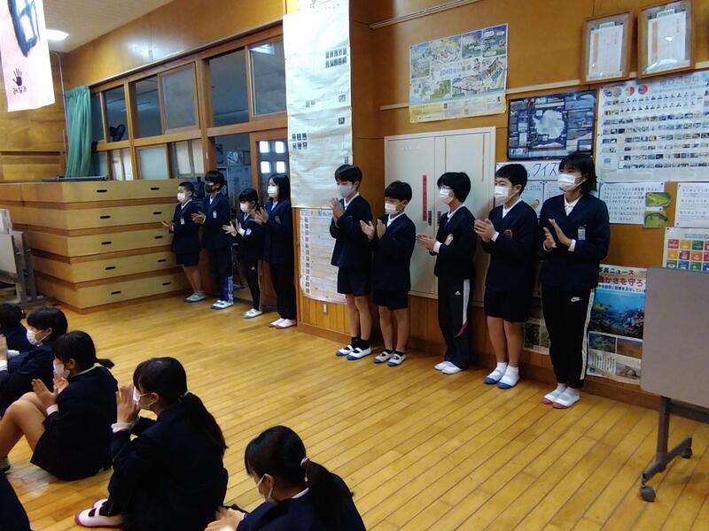 まずは、体育館で6年生のお別れの会を行いました。
