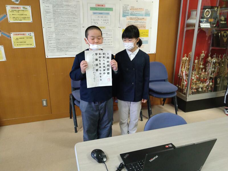 1月の生活目標は「給食への感謝の気持ちをあらわそう」でした