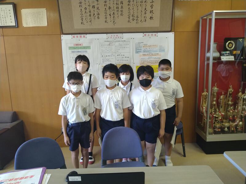 9月30日(金)、児童朝会を行いました。コロナ感染防止のため、ここ最近はリモートで行っていましたが、不具合があり、急遽、放送室からの放送で行いました。