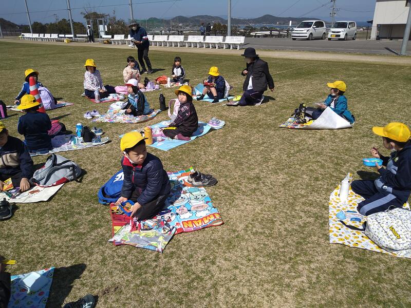 そして、いよいよ出発。会場のりんせんグランドに着くと、早速お弁当を食べました。