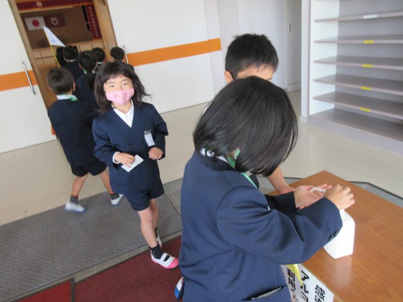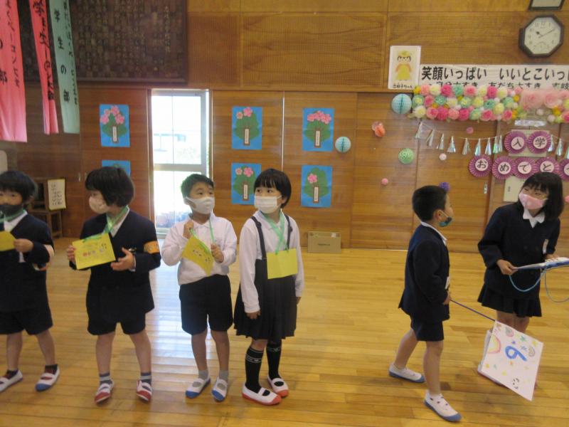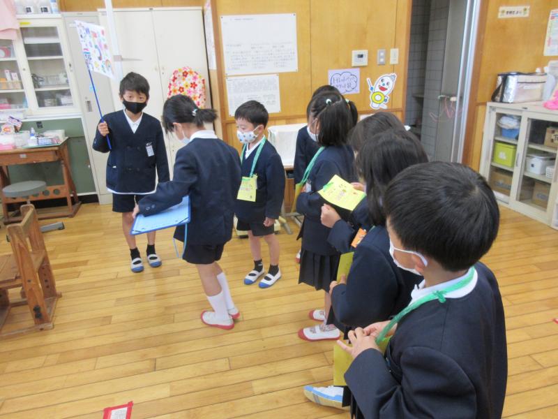 2年生が先導して1年生を案内。1年生は2年生のお兄さん、お姉さんのお話をしっかり聞いていました。